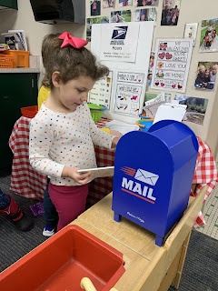 This week, we learned about neighborhood helpers like mail carriers, garbage collectors, and reporters. We really enjoyed playing in our classroom post office and mailing valentines to our friends! During circle time, we discussed Valentine's Day and ways we can show love to our family and friends. We also learned about the letter P and reviewed how to draw a person with Mat Man! Here are some picture highlights from our week in 3's preschool:
